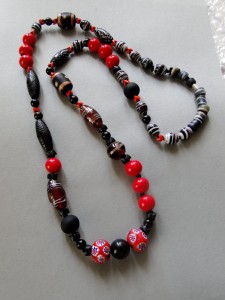 Description : Onyx. Verre tchèque ancien. Perles de verre de Venise contemporaines.Verre indien contemporain. p^te de verre africaine.